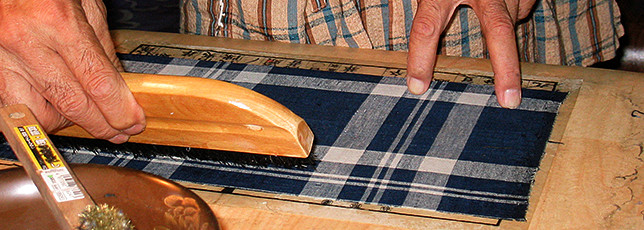 手すき和紙と名物布を使って豆本を作ることができます。