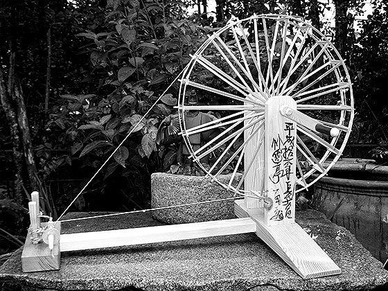 竹岱亭の手織りで使用される綿、道具の一部を掲載しております